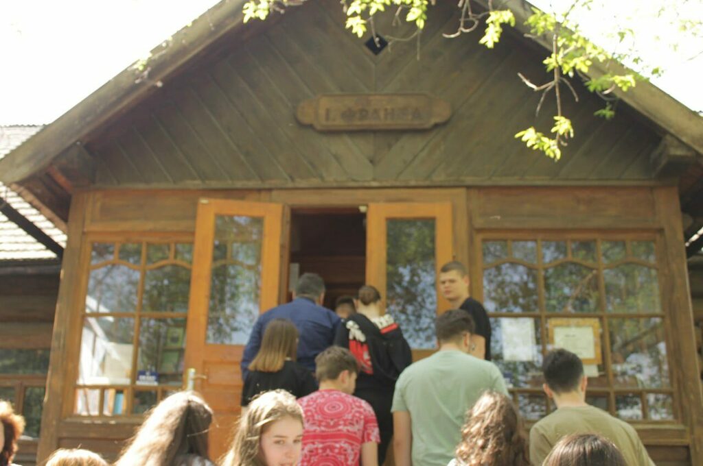 Про експозицію літературно-меморіального музею Івана Франка ошатно розповіла її господиня Луцюк Ганна Іванівна. Зокрема, екскурсоводом детально було звернуто увагу про перебування Івана Франка та інших видатних діячів літератури і мистецтва Михайла Грушевського, Лесі Українки, Михайла Коцюбинського, Гната Хоткевича у с. Криворівні, висвітлено вшанування пам’яті письменника на Гуцульщині. На початку ХХ ст., з 1901 до 1914 р., у с. Криворівню щоліта (крім 1905 і 1908 рр.) приїжджав Іван Франко. Спочатку він зупинявся у хаті Проця Мітчука, а з 1906 р. – у Василя Якіб’юка, сільського народного лікаря, різьбяра, музиканта, фотографа. Тут була написана низка відомих творів українського письменника. У 1953 р. в хаті Василя Якіб’юка відкрито кімнату-музей І. Франка. Екскурсоводом тут також були показані ручні роботи та рукописи Параски Плитки-Горицвіт – гуцульської художниці, письменниці, фотографа.