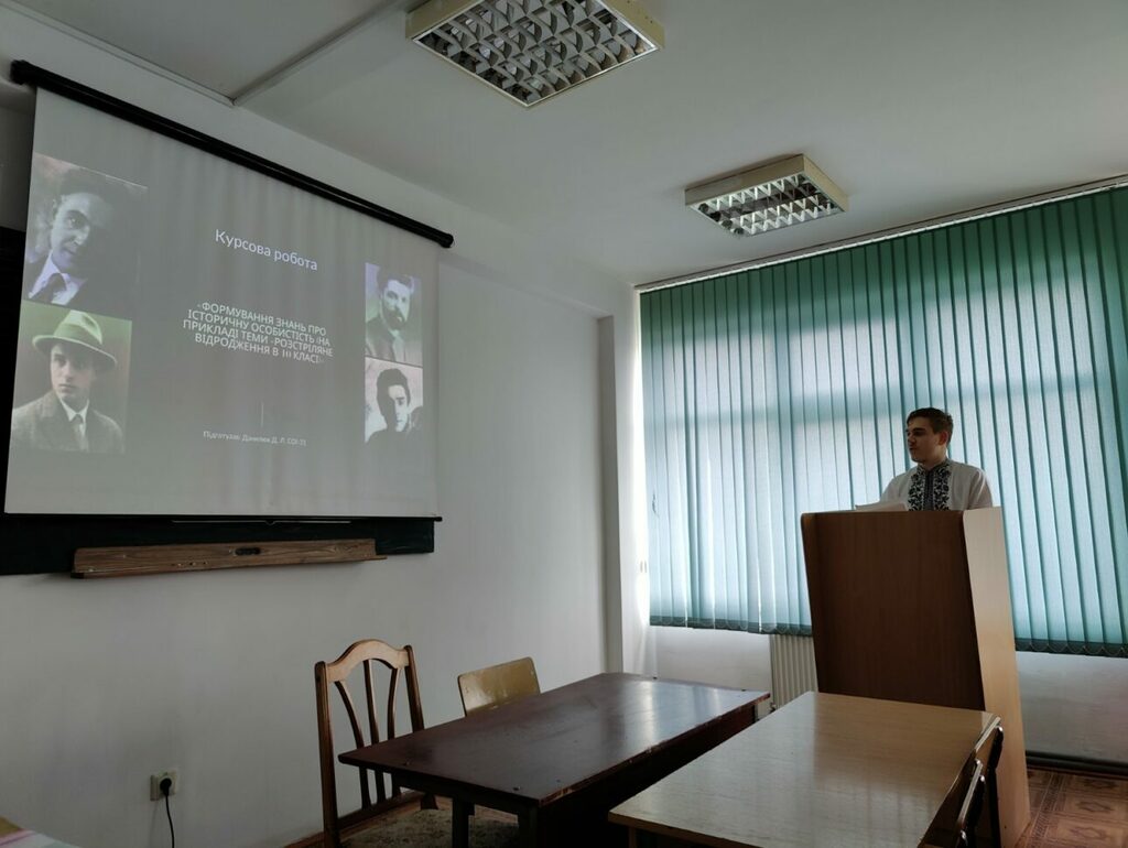 23–24 травня 2023 р. відбувся захист курсових робіт з психолого-педагогічних дисциплін і методики навчання історії студентів ІІІ курсу спеціальності 014 Середня освіта (Історія) ОР «Бакалавр» (денна форма навчання). В рамках захисту курсових робіт були сформовані чотири комісії, до якої ввійшли викладачі кафедри історії України і методики викладання історії та кафедри соціальної психології проф. Райківський І.Я., доц. Галицька-Дідух Т.В., доц. Дрогомирецька Л.Р., доц. Єгрешій О.І., доц. Королько А.З., ст. викл. Паска Б.В., доц. Сметаняк В.І. У своїх виступах під час захисту результатів своїх кваліфікаційних робіт 32 студентів СОІ–31 і СОІ–32 звернули увагу на аргументованість вибору теми дослідження та її розкриття, підтвердили вільне володіння матеріалом, окреслили ступінь самостійності у виконанні роботи, визначили особистий внесок (наукову новизну) автора в роботу.