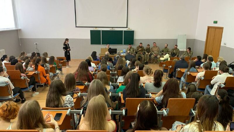 Сьогодні у Прикарпатському національному університеті імені Василя Стфеаника відбулася зустріч студентів Івано-Франківського коледжу ПНУ із студенткою 2 курсу спеціальності «Публічне управління і адміністрування» Інституту післядипломної освіти та довузівської підготовки ПНУ, кулеметницею 72 окремої механізованої бригади імені Чорних Запорожців Оксаною Рубаняк та її побратимами. Захід мав назву «Герої серед нас».