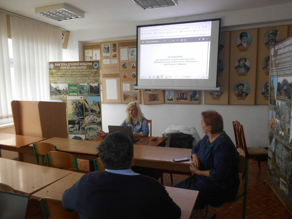 Тамара Вячеславівна Галицька-Дідух виокремила основні напрямки роботи викладача/вчителя-практиканта в закладах вищої освіти і закладах загальної середньої освіти, його права та обов’язки. Викладачка зауважила, що програма практики нтів розроблена відповідно до Закону України «Про вищу освіту», до «Положення про організацію та проведення практики у Прикарпатському національному університеті імені Василя Стефаника від 27 листопада 2019 р., «Стратегії розвитку Прикарпатського національного університету імені Василя Стефаника» на 2020–2025 рр.», навчального плану спеціальності й кваліфікаційним характеристикам, освітнім програмам, інструкції з охорони праці та навколишнього середовища, Наскрізної програми практики спеціальності 014 Середня освіта (Історія) Факультету історії, політології і міжнародних відносин. Т.В. Галицька-Дідух відзначила, що під час виробничої педагогічної (асистенської) практики в закладах вищої освіти і закладах загальної середньої освіти поглиблюються і закріплюються знання студентів спеціальності 014 Середня освіта (Історія) ОР «Магістр» із педагогіки вищої школи та педагогічної майстерності викладача, сучасних освітніх технологій, методики викладання історичних дисциплін у вищій школі, методики викладання історії у закладах загальної середньої освіти, інших фахових предметів. Під час практики виробляються навички педагогічної праці, удосконалюються сформовані методичні уміння. Тамара Вячеславівна розповіла студентам про особливості практики, компетенції, якими має оперувати нинішній вчитель та викладач-історик.
