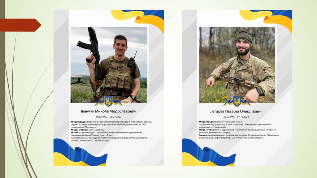 Учасники семінару отримали вичерпну інформацію про гурток викладачів Івано-Франківського педагогічного інституту середини 1960-х рр., який очолювали історики Валентин Мороз та Петро Арсенич. Було подано відомості про студентів та випускників Факультету історії, політології і міжнародних відносин, які загинули під час оборони територіальної цілісності нашої батьківщини в 2022–2023 рр. у східних та південних областях. Також проаналізовано процеси вшанування пам’яті загиблих Героїв, які відбуваються на рівні Факультету.