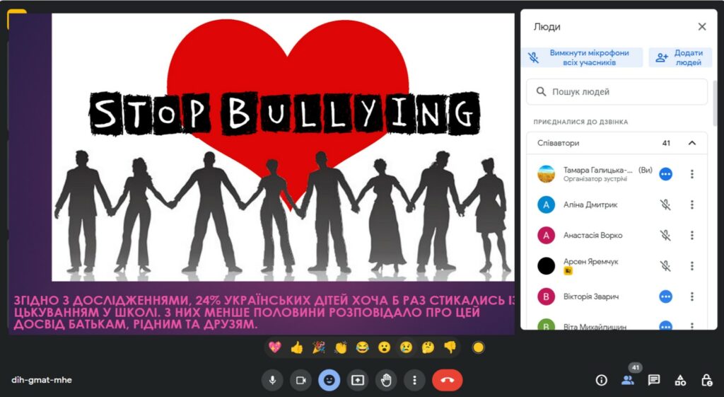 2 листопада 2023 р. заступник декана з виховної роботи Факультету історії, політології і міжнародних відносин Тамара Галицька-Дідух провела виховний захід «Стоп, булінг!» для студентів першого курсу спеціальності 014 Середня освіта (Історія) ОР «Магістр» і ОР «Бакалавр». Читати далі