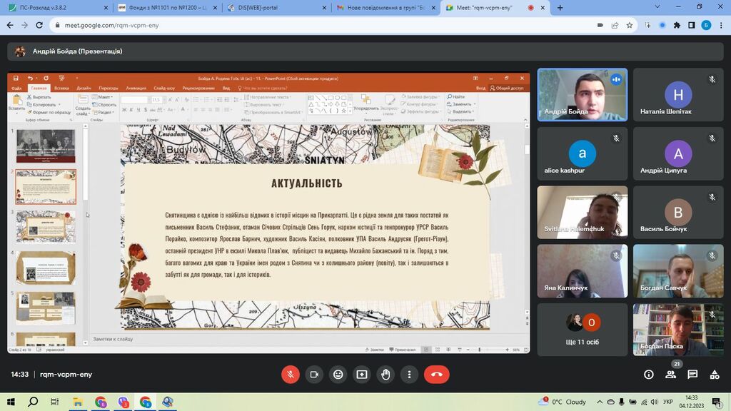 4 грудня 2023 р. з нагоди 95-ї річниці з дня народження і восьмої річниці смерті відомого українського вченого, історика, першого завідувача кафедри історії України Володимира Грабовецького (1928–2015) на його рідній малій батьківщині у селищі Печеніжин Коломийського району відбулася Всеукраїнська наукова конференція «Четверті Грабовецькі історичні читання». Її організаторами стали кафедра історії України і методики викладання історії Факультету історії, політології і міжнародних відносин, управління культури, національностей та релігій Івано-Франківської ОДА, Івано-Франківська обласна організація Національної спілки краєзнавців України, Івано-Франківський історико-меморіальний музей Олекси Довбуша, Івано-Франківський обласний центр туризму і краєзнавства учнівської молоді, відділ культури і туризму Печеніжинської селищної ради, публічна бібліотека ім. В. Грабовецького та історико-краєзнавчий музей Олекси Довбуша селища Печеніжин. Цьогоріч учасниками конференції стали понад 80 осіб: представники органів державної влади, науковці, викладачі, вчителі, керівники гуртків закладів загальної середньої і позашкільної освіти, музейні працівники, студенти та ін. з різних регіонів України.