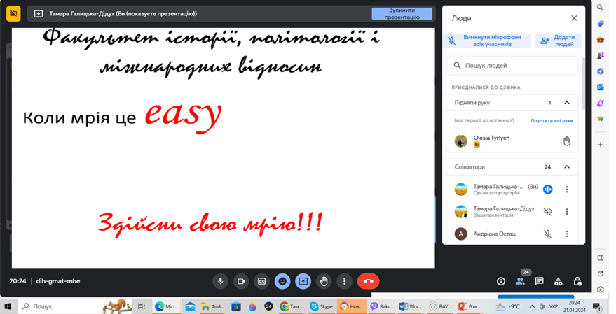 21 січня 2024 р. для учнів старших класів шкіл м. Івано-Франківська і першокурсників Факультету історії, політології і міжнародних відносин доцентом кафедри історії України і методики викладання історії Тамарою Галицькою-Дідух проведений виховний захід «Коли мрія це easy». Коли людина Читати далі