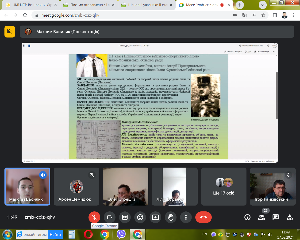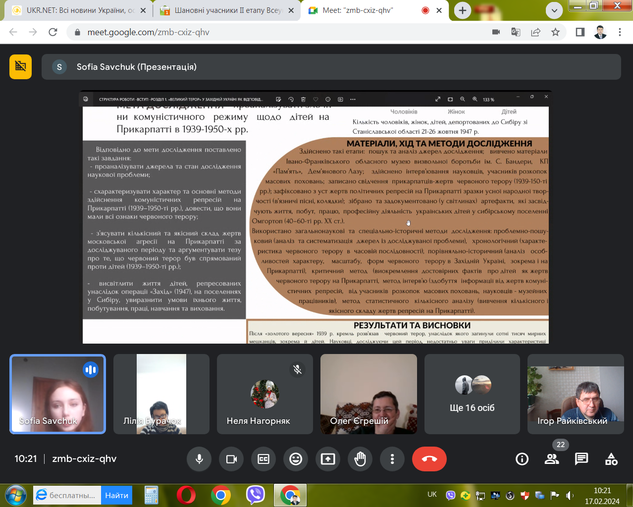 17–18 лютого 2024 р. на базі Прикарпатського національного університету імені Василя Стефаника тривав ІІ (обласний) етап Всеукраїнського конкурсу-захисту науково-дослідницьких робіт учнів-членів Малої академії наук України. Вихованці відділення історії МАН України захищали своїх роботи 17 лютого 2024 р. До складу журі секцій відділення історії ввійшли викладачі Факультету історії, політології і міжнародних відносин: секція «Історія України» – Олександр Марущенко, Андрій Королько і Богдан Паска (13 учнівських робіт); секція «Історичне краєзнавство» – Ігор Райківський, Олег Єгрешій і Лілія Бурачок (19 учнівських робіт); секції «Етнологія», «Всесвітня історія», «Археологія», «Кримськотатарська гуманітаристика» – Ігор Кочкін, Лілія Щербін та Ірина Солонець (11 учнівських робіт).