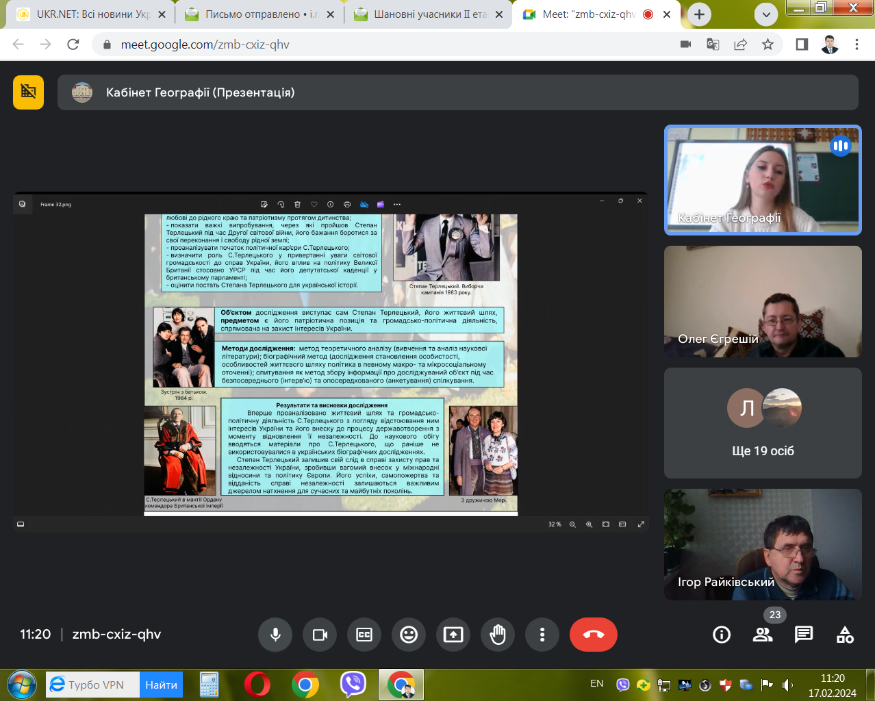 Наукова конференція передбачала презентацію учасником лише найсуттєвіших результатів дослідження перед журі й іншими учасниками наукової секції та дозволяла оцінити вміння учасника обирати основне й презентувати його, спрямована на формування розуміння того, як оприлюднюється й поширюється наукове знання. Учасники конкурсу підготували презентації для візуалізації своїх доповідей.