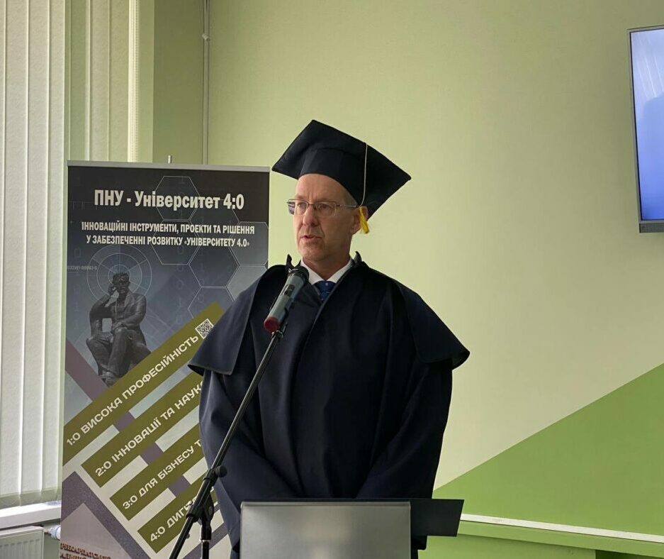 «Звання Почесного доктора є найвищим науковим титулом та має дуже велике значення. Це свідчить про те, що людина дуже багато досягла в певній галузі, зокрема науковій. Я хотів би відмітити три найважливіші наші проєкти в Україні, зокрема у спільній співпраці з Прикарпатським університетом. Перший, це консорціум українських університетів та варшавських, куди входять більше 20 вищих навчальних закладів; другий проєкт – це Міжнародний науковий центр «Обсерваторія», який є головним осередком нашої співпраці; третій – це Міжнародний центр зустрічей студентської молоді України і Польщі у Микуличині. Завдяки таким проєктам, відкрито ще більше можливостей для подальшого розвитку. Дякую ректору ПНУ Ігорю Цепенді та Вченій раді за почесне звання, успішну працю та наукове сприяння у нашій взаємодії та налагодженні зв’язків», – підкреслив ректор Варшавського університету, Почесний доктор Прикарпатського національного університету імені Василя Стефаника, член правління Європейської асоціації університетів Марцін Палис.