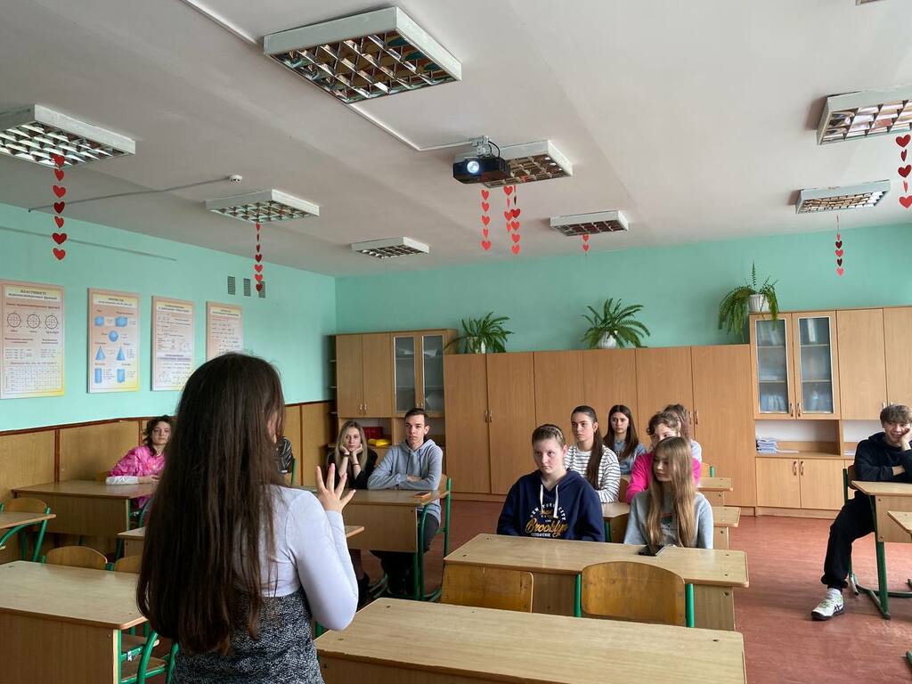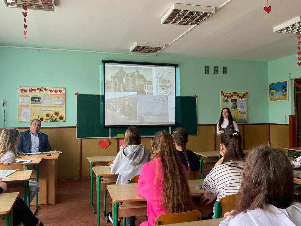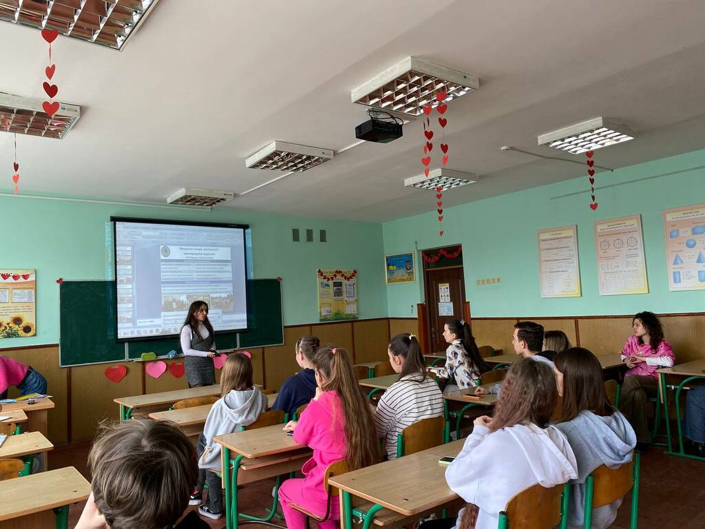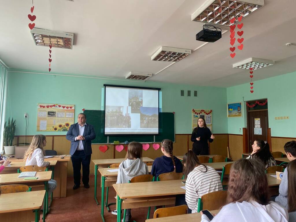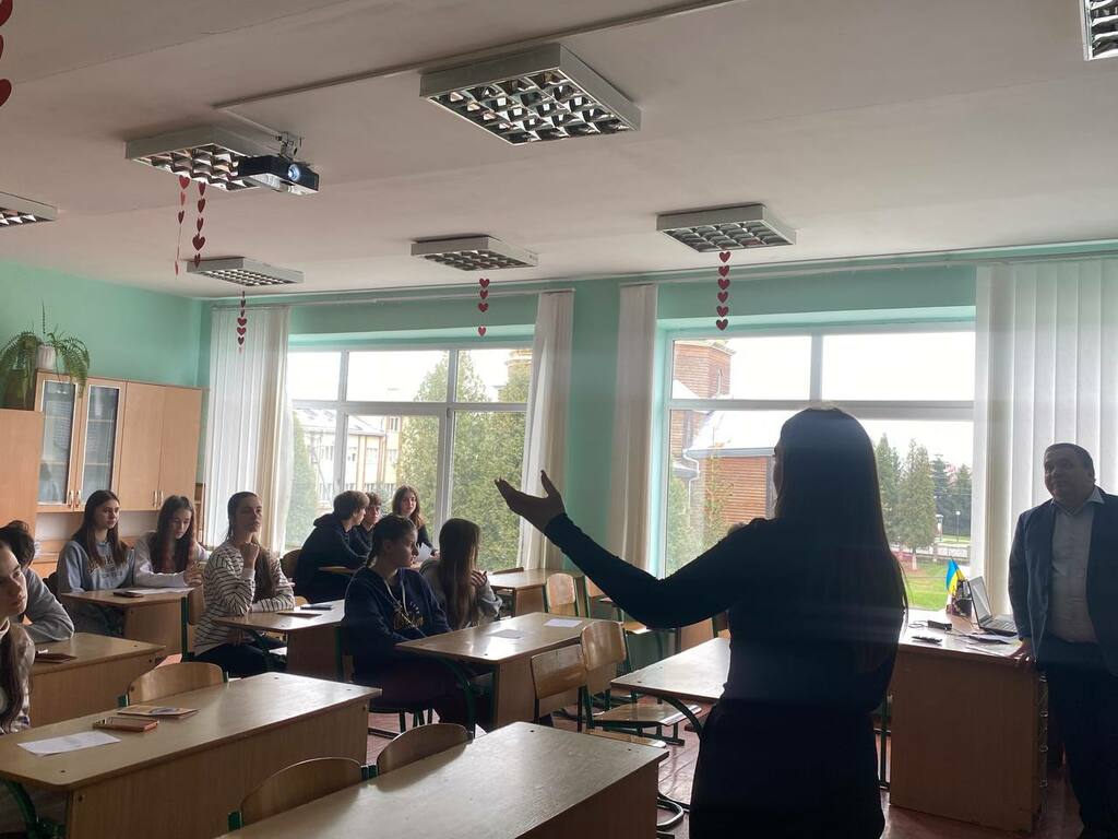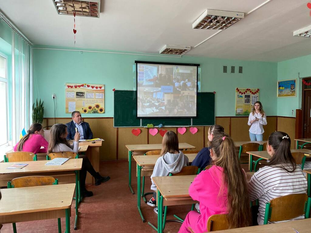 Каріна Говзан акцентувала увагу на громадському і студентському дозвіллі. Розкрила структуру і зміст діяльності студентських сенату та профкому Університету, розповіла учням про різносторонню діяльність молодіжного центру «Paragraph».