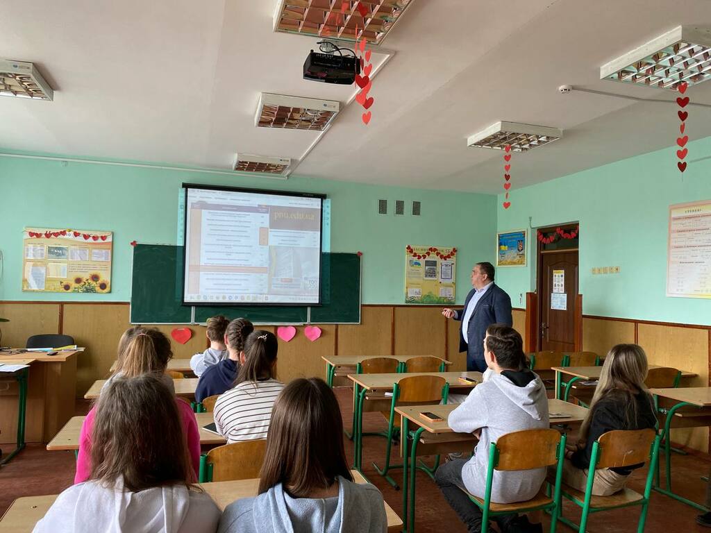 22 березня 2024 р. в рамках профорієнтаційних заходів на факультеті історії, політології і міжнародних відносин Прикарпатського національного університету імені Василя Стефаника «Університет кар’єри для учнів» викладач кафедри історії України і методики викладання історії кандидат історичних наук, доцент Андрій Зіновійович Королько та студентки групи СОІ–32 спеціальності 014 Середня освіта (Історія) ОР «Бакалавр» (денна форма навчання) Наталія Якубів, Каріна Говзан, Богдана Кустрьо та Інна Минта відвідали Крихівецький ліцей Івано-Франківської міської ради. Тут відбулася зустріч з майбутніми абітурієнтами – випускниками цього закладу загальної середньої освіти.