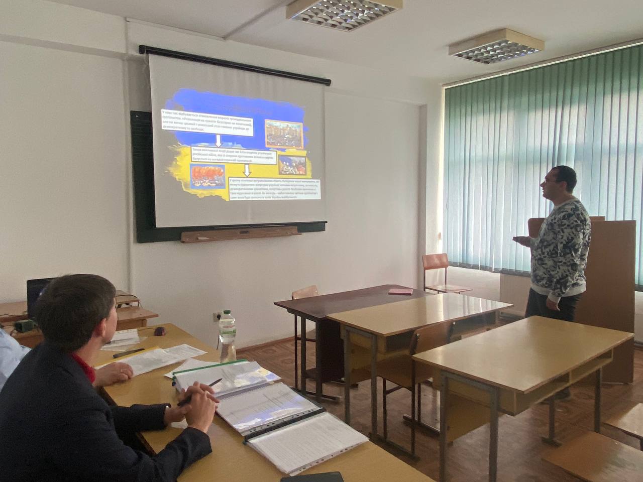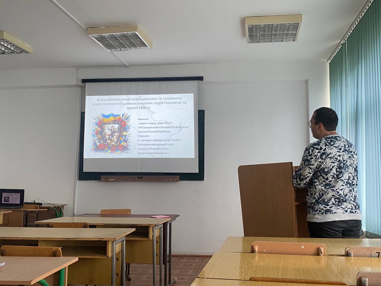 30 травня 2024 р. відбувся захист курсових робіт з методики навчання історії і психолого-педагогічних дисциплін студентів ІІІ курсу спеціальності 014 Середня освіта (Історія) ОР «Бакалавр» (денна форма навчання). В рамках захисту курсових робіт були сформовані три комісії, до якої ввійшли викладачі кафедри історії України і методики викладання історії та кафедри соціальної психології проф. Райківський І.Я., доц. Галицька-Дідух Т.В., доц. Дрогомирецька Л.Р., доц. Єгрешій О.І., доц. Королько А.З., ст. викл. Паска Б.В., доц. Сметаняк В.І. У своїх виступах під час захисту результатів своїх робіт 33 студентів СОІ–31 і СОІ–32 звернули увагу на аргументованість вибору теми дослідження та її розкриття, підтвердили вільне володіння матеріалом, окреслили ступінь самостійності у виконанні роботи, визначили особистий внесок (наукову новизну) автора в роботу.