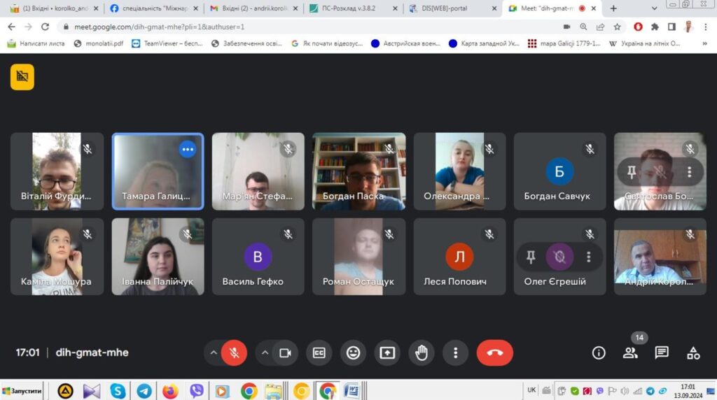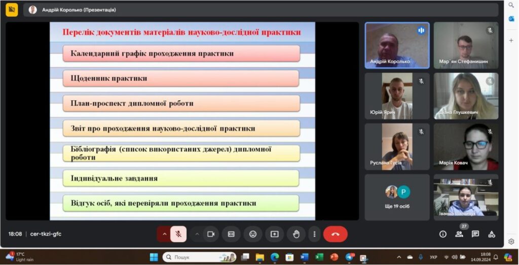 14 вересня 2024 р. за допомогою сервісу організації конференцій Google Meet відбулася нарада з організації проведення науково-дослідної практики для студентів ІІ курсу спеціальності 014 Середня освіта (Історія) ОР «Магістр» (денна і заочна форма навчання). Зазначена практика студентів є Читати далі