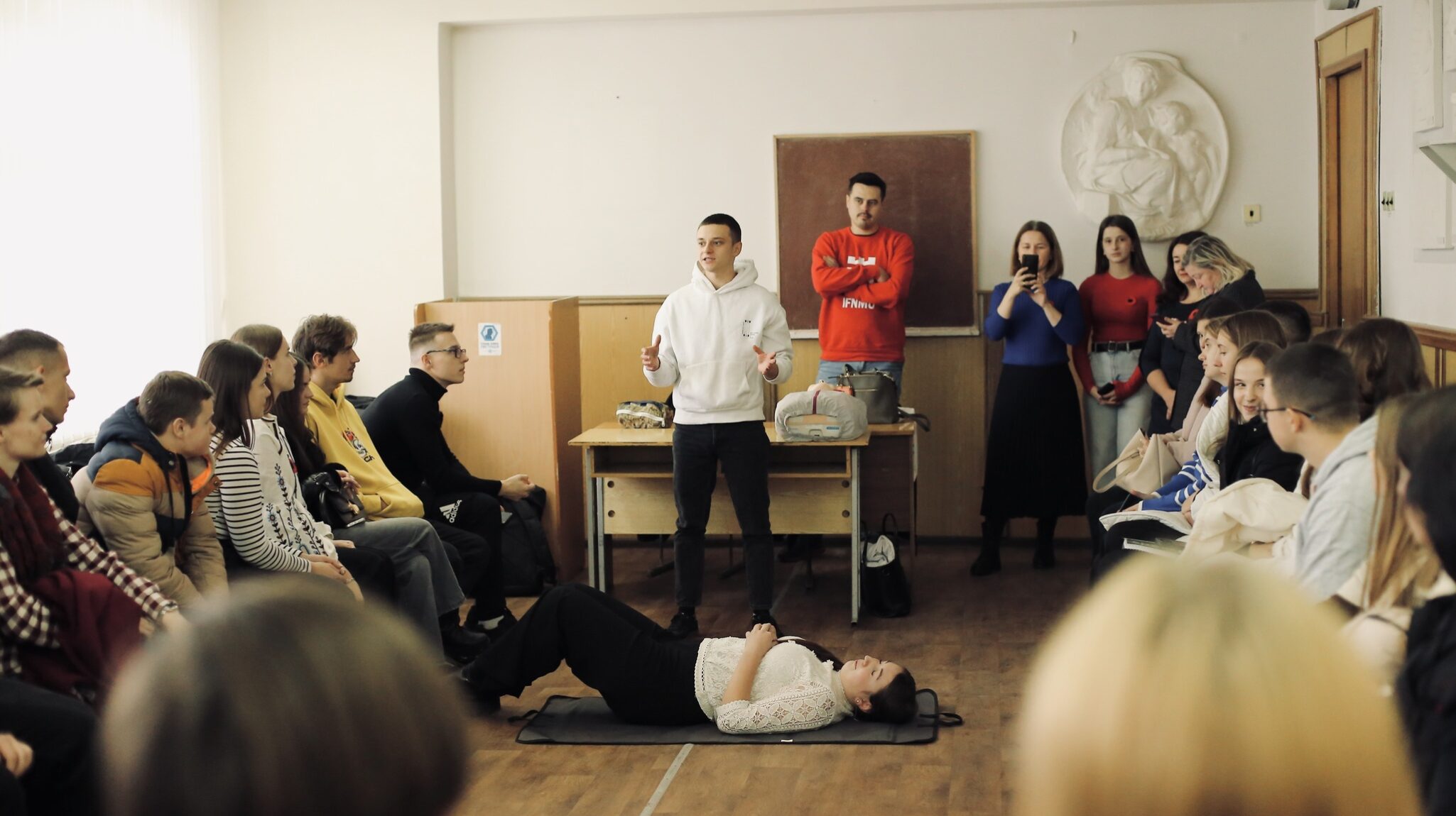 За ініціативи випускниці факультету, к.і.н., доценту, заступниці декана медичного факультету Любов Сливки та заступника декана медичного факультету Івано-Франківського національного медичного університету Андрія Процика із студентами проведено тренінг з надання домедичної допомоги.