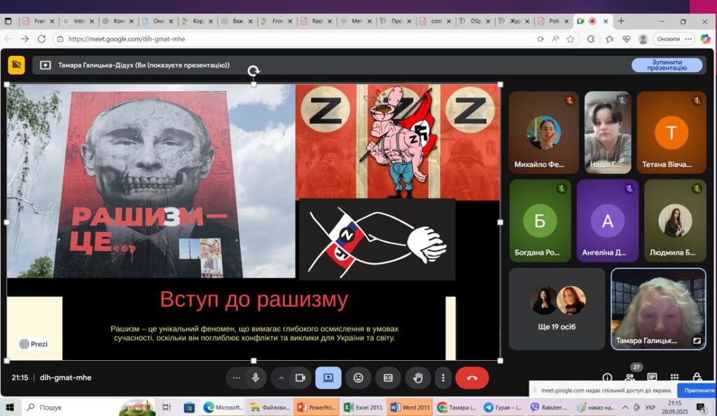 Сьогодні, 28 вересня 2025 р., для студентів факультету історії, політології і міжнародних відносин заступник декана з виховної роботи, доцент кафедри історії України і методики викладання історії Тамара Галицька-Дідух провела онлайн-лекцію «Рашизм». Під час лекції було детально розглянуто внутрішньо- Читати далі
