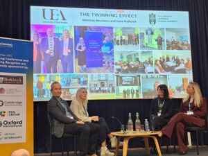 У рамках сесії «The Twinning Effect» начальниця науково-дослідної частини Ірина Григорук презентувала досвід співпраці Карпатського національного університету з Університетом Східної Англії – один із найбільш успішних кейсів партнерства в межах Twinning Initiative.