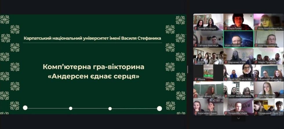 Сьогодні, 18 листопада, відбувся онлайн-турнір за грою-вікториною «Андерсен єднає серця», який провели науковці Карпатського національного університету імені Василя Стефаника. У турнірі взяли участь 25 команд з дев’яти регіонів України (Івано-Франківська, Тернопільська, Київська, Львівська, Луганська, Кіровоградська, Житомирська, Миколаївська, Сумська Читати далі