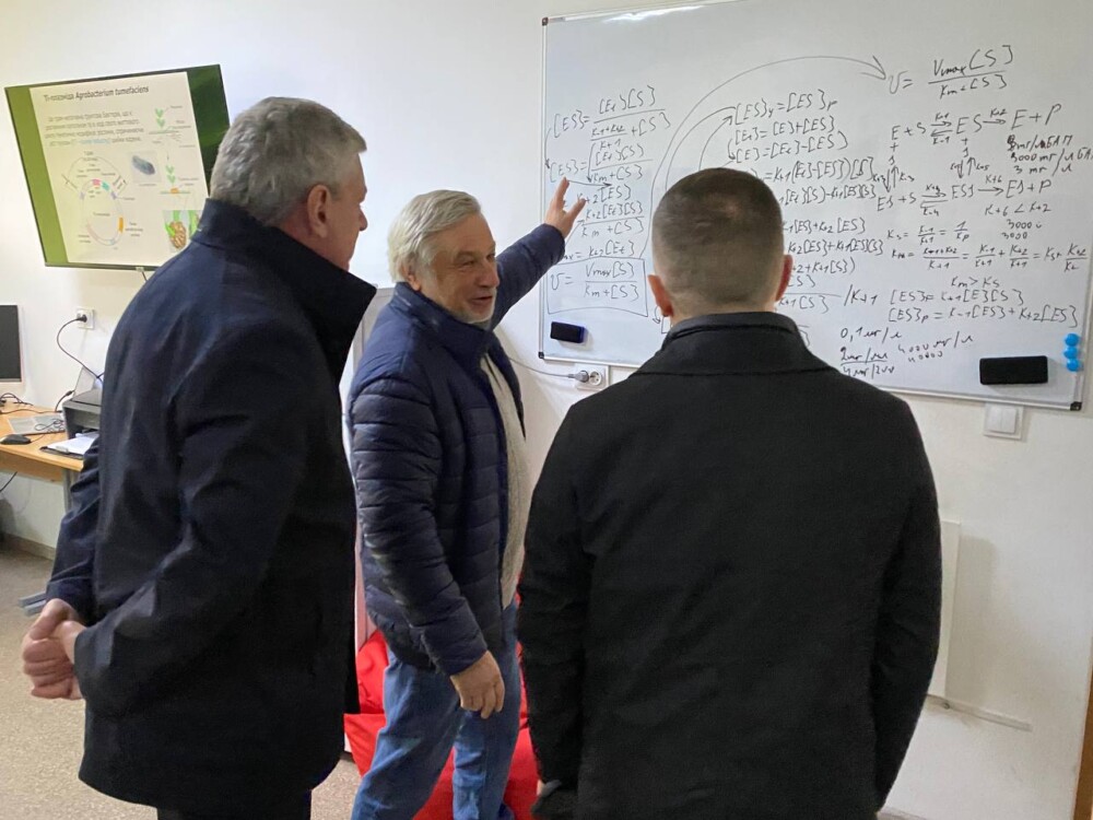 Доктор біологічних наук, професор Володимир Лущак та доцент кафедри біохімії та біотехнології Віктор Гусак продемонстрували гостям лабораторії мікроклонального розмноження рослин, біохімії, генетики та молекулярної біології.