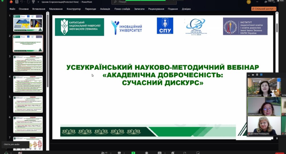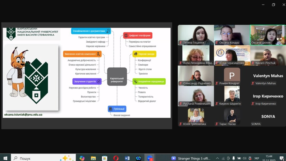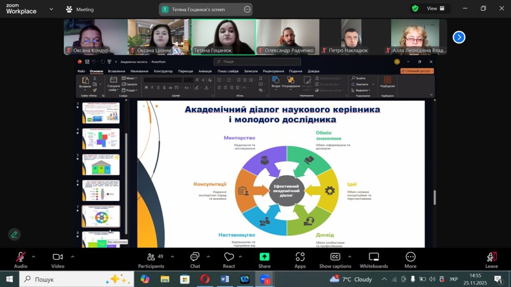 На завершення вебінару Оксана Цюняк зазначила, що тільки у синергії зусиль викладачів, молодих учених, аспірантів та студентів можливо сформувати стійку культуру доброчесності, що відповідатиме європейським стандартам і сприятиме розвитку якісної української освіти.