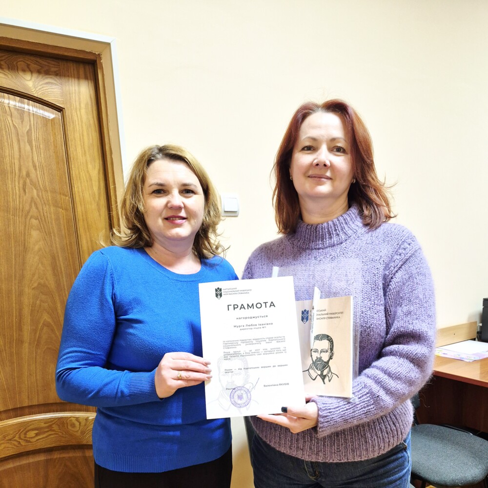 Наталія Луцик, асистент кафедри французької філології факультету іноземних мов, від імені ректорату Карпатського національного університету імені Василя Стефаника вручила грамоту про тривалу та плідну співпрацю керівництву та колективу Ліцею 1 Івано-Франківської міської ради.