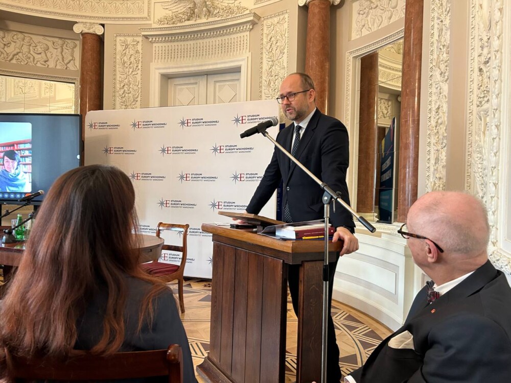 З вітальними словами на початку урочистостей виступили проректор Варшавського університету Адам Невядомський та представники дипломатичних структур Польщі – міністри Генріка Мосціцька-Дендис і Марцін Пшидач.