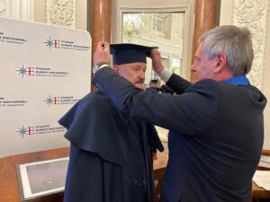 Ще одним знаковим елементом програми стало вручення диплому і мантії Почесного доктора Карпатського національного університету в межах церемонії присвоєння звання doctor honoris causa КНУВС професору Джону С. Міцґелу (Studium Europy Wschodniej UW / Columbia University).