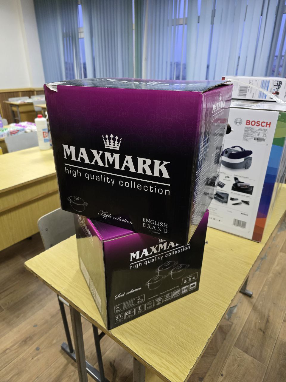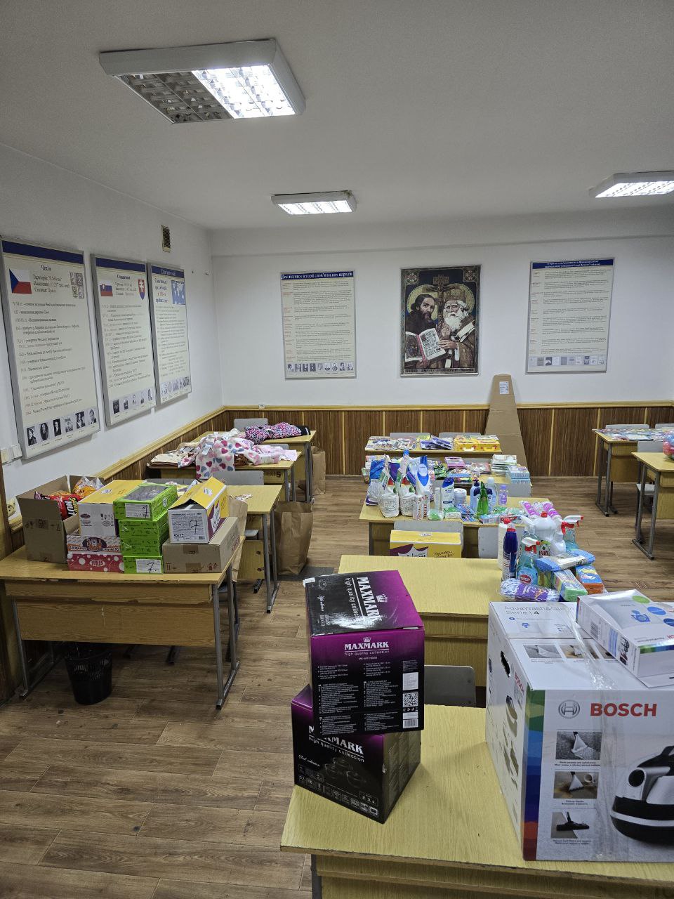 Окрім подарунків, ми змогли подбати і про важливе щоденне: два набори каструль, миючий пилосос BOSCH BWD41740, бактерицидний опромінювач у жалюзі EKRAN Jal, засоби гігієни – шампуні, зубні пасти та щітки, олійки, мило, рушники, а також побутову хімію для кухні, пральні порошки і багато іншого.