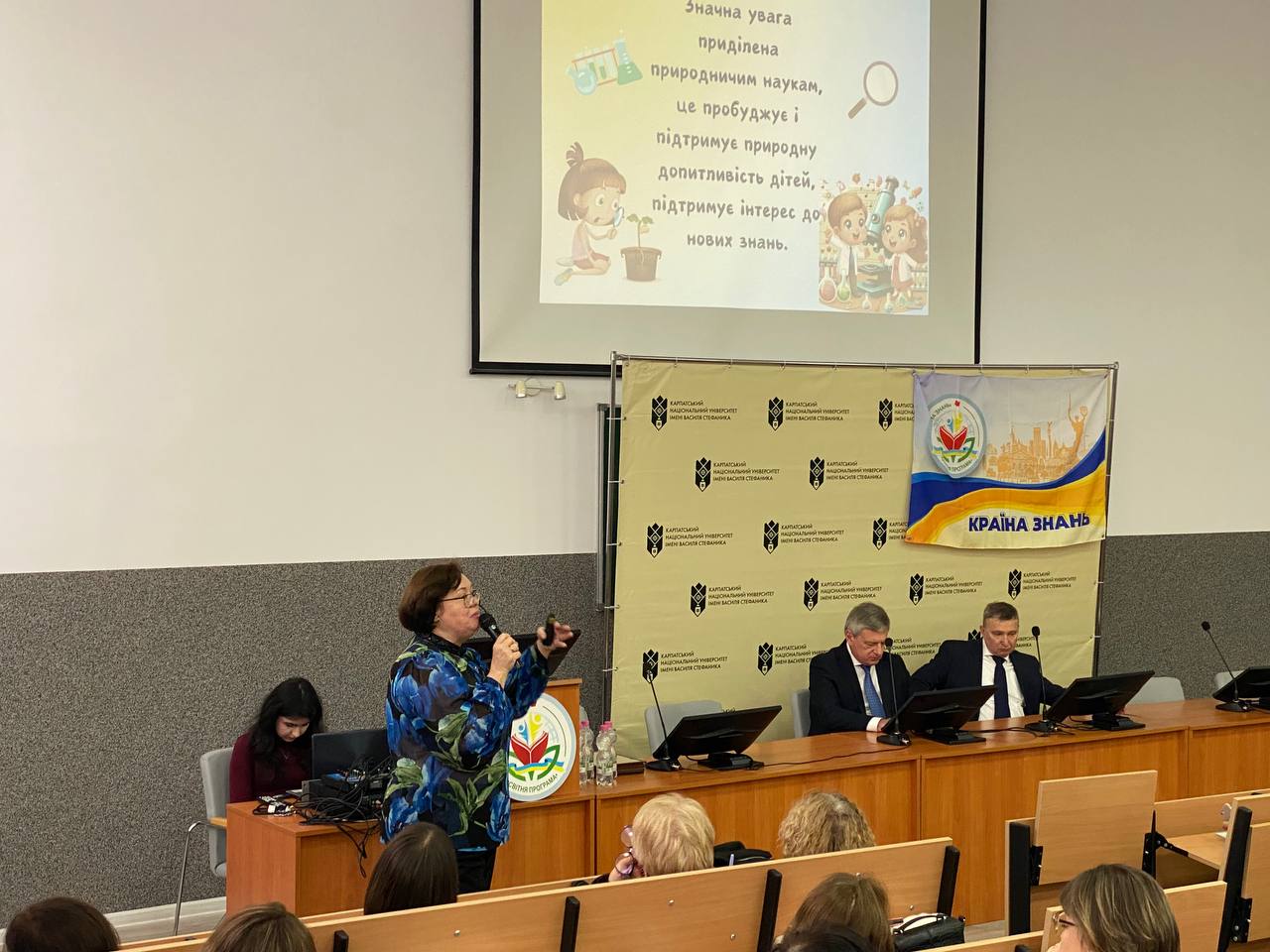 Голова Вченої ради Карпатського національного університету імені Василя Стефаника, член-кореспондент НАПН України, професор Ігор Цепенда вітаючи учасників наголосив на важливості оновлення змісту початкової освіти та ролі природничих наук у формуванні аналітичного мислення. «Без розвитку природничої складової й STEM-освіти неможливо готувати дітей до майбутніх професійних викликів», – підкреслив професор.
