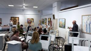 Творче заняття провів Богдан Бойчук – кандидат мистецтвознавства, професор кафедри образотворчого і декоративно-прикладного мистецтва та реставрації Навчально-наукового інституту мистецтв КНУВС. Учасники працювали з акриловими фарбами, створюючи власні натюрморти, отримували фахові поради щодо композиції та індивідуальні підказки під час роботи.