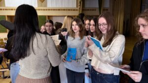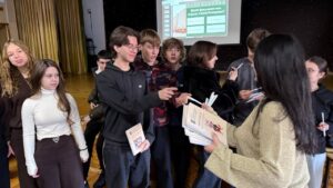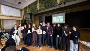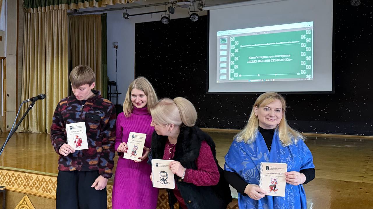 Учні 10–11 класів активно відповідали на питання, поділившись на три команди, з цікавістю в інтерактивній формі досліджуючи життя та творчість видатного українського генія Василя Стефаника, патрона університету.