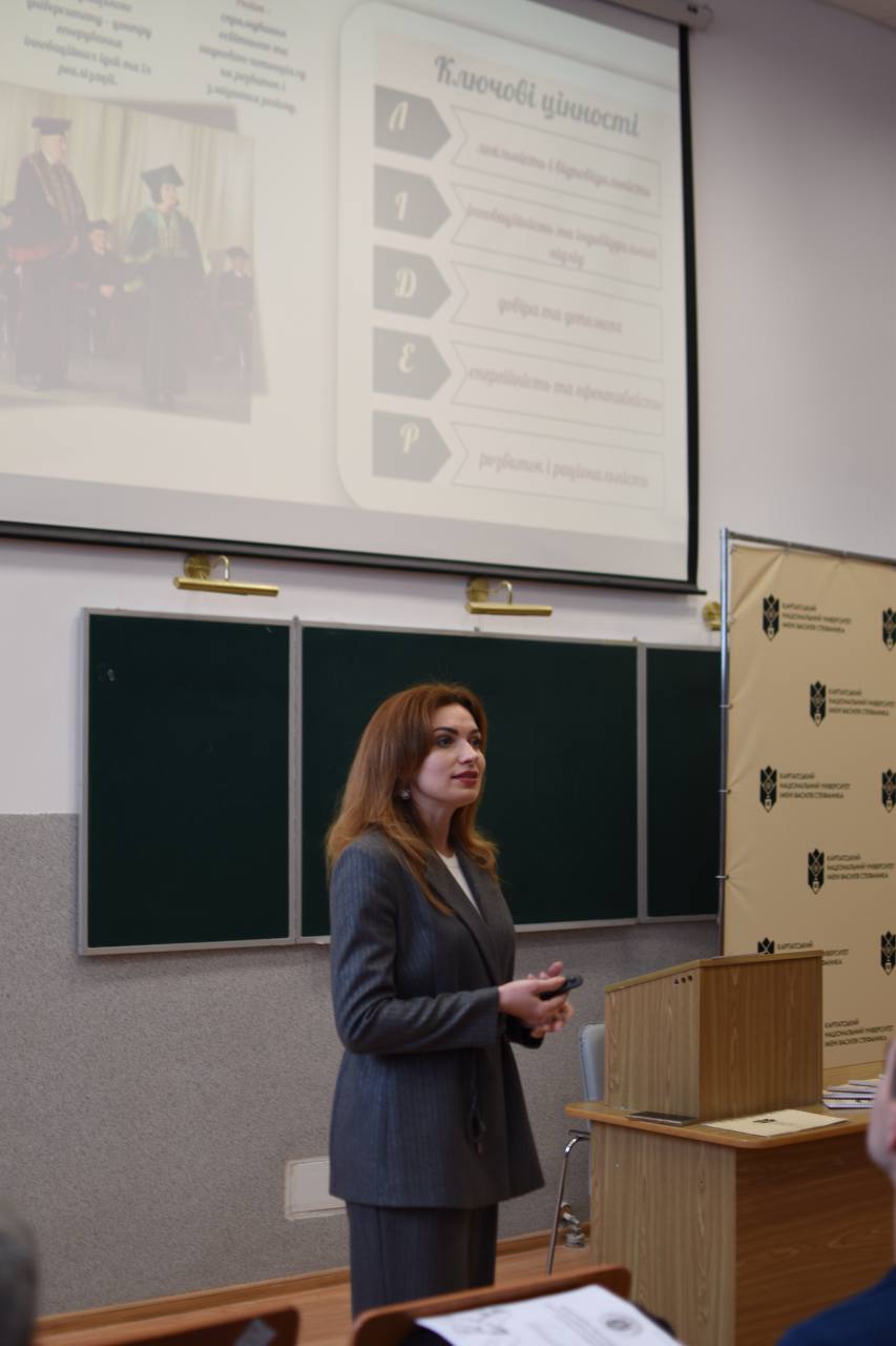 Під час адаптаційної сесії учасників ознайомили з місією та цінностями університету, символікою та талісманом – Карпатською риссю, яка уособлює уважність, внутрішню силу, відповідальність і здатність діяти в гармонії з університетським середовищем. Окрему увагу було приділено питанням внутрішніх комунікацій, взаємодії між підрозділами та ролі кожного працівника у спільній діяльності.