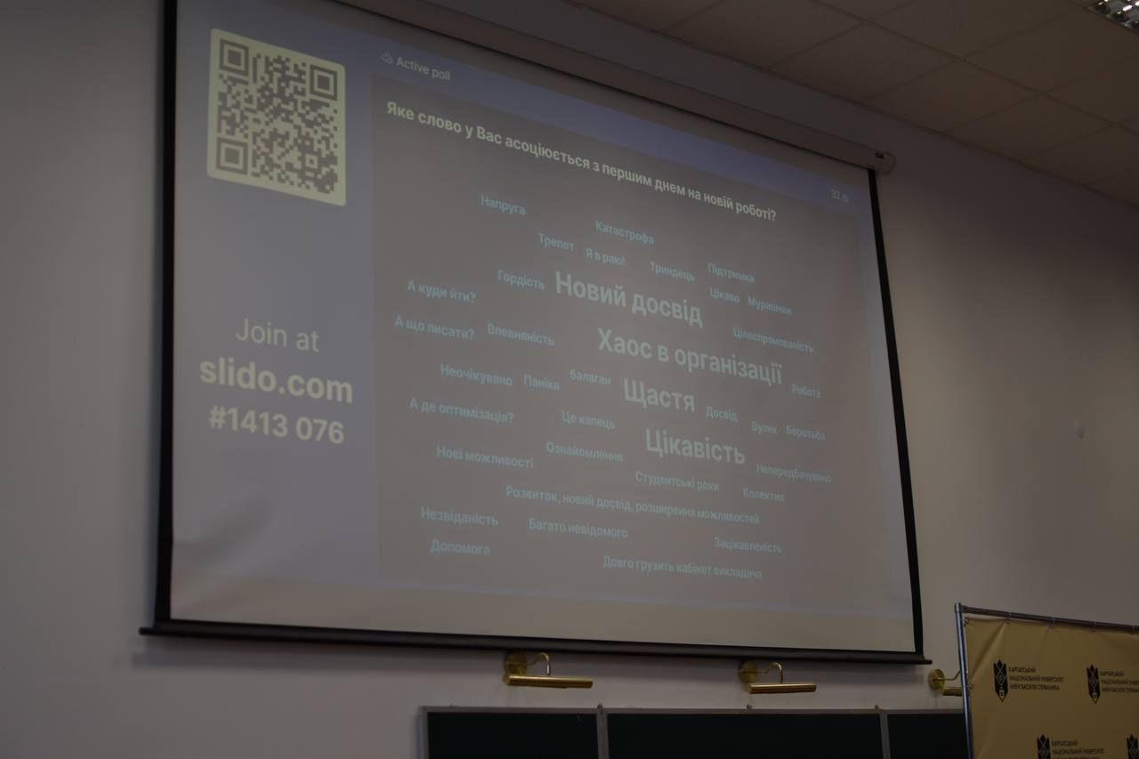Новим працівникам було презентовано Довідник працівника як практичний інструмент орієнтації в організаційних процесах університету, а також адаптаційну карту, що допомагає структурувати період входження в посаду, визначити ключові запити та професійні цілі на початковому етапі роботи. У межах заходу кожен учасник отримав символічний подарунок – пряник з логотипом університету та мотиваційне побажання як знак підтримки й відкритості університетської спільноти.