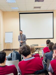 За тиждень до новорічних свят учні 11 класу Католицького ліцею мали надзвичайно важливу й зворушливу зустріч з Андрієм Марковецьким – магістром спеціальності «Середня освіта (історія і громадянська освіта)», науковим співробітником Івано-Франківського обласного музею визвольної боротьби ім. Степана Бандери та воїном ЗСУ, бійцем ТрО з позивним Гектор.