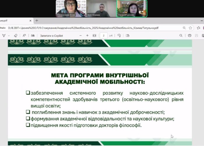 За її словами, програми внутрішньої академічної мобільності не лише сприяють обміну кращими практиками викладання, а й створюють реальні можливості для студентів застосовувати набуті знання та навички у науково-дослідній діяльності.