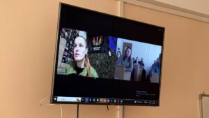 Під час онлайн-зустрічі викладачів і студентів була присутня Оксана Рубаняк – магістрантка кафедри публічного управління та адміністрування Карпатського національного університету імені Василя Стефаника, українська поетеса та військовослужбовиця.