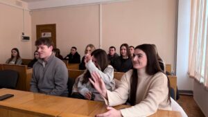У ході зустрічі Оксана Рубаняк привітала переможців аукціону, поділилася власною історією життєвого та професійного шляху, розповіла про поєднання військової служби й творчості, значення поетичного слова в умовах війни, а також відповіла на численні запитання студентів.