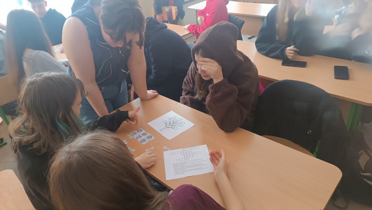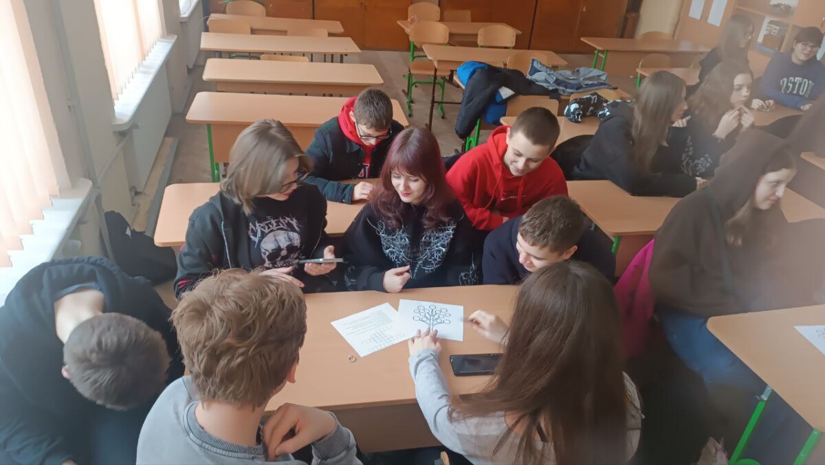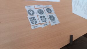 Напередодні практикантка дала учням завдання пофотографувати герб у повсякденному житті і створити презентацію, що вони зробили бездоганно, на найкращому рівні. Під час заходу поговорили про історію гербу, в командах виконали завдання: посортували різні версії гербу за хронологією, виконали кросворд, «дерево пошани» і створили власний герб класу.