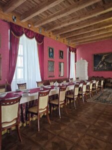 Далі група вирушила до Підгорецького замку, який часто називають «українським Версалем». Студенти мали нагоду милуватися красивою спорудою замку, прогулюватися терасами і довколишньою територією. Тут панувала особлива атмосфера таємничості. Найяскравіше враження залишила легенда про Білу Пані – привид молодої жінки, яку, за переказами, через ревнощі живцем замурували в стінах замку. Завершилася подорож у Золочівському замку, в якому розташована музейна експозиція, адже він теж є частиною Львівської галереї мистецтв. Тут збереглися окремі портали, потайний хід, туалети XVIII ст. та первісна система каналізації. Студенти дізналися про таємничі камені тамплієрів із давніми написами, які нібито виконують бажання. Багато хто з групи не втримався й спробував «закрутити» палець – хтось загадував успіх у навчанні, хтось – велике кохання. Не обійшлося й без історії про привид королеви Марії Казимири, яка, за легендою, досі ходить коридорами.